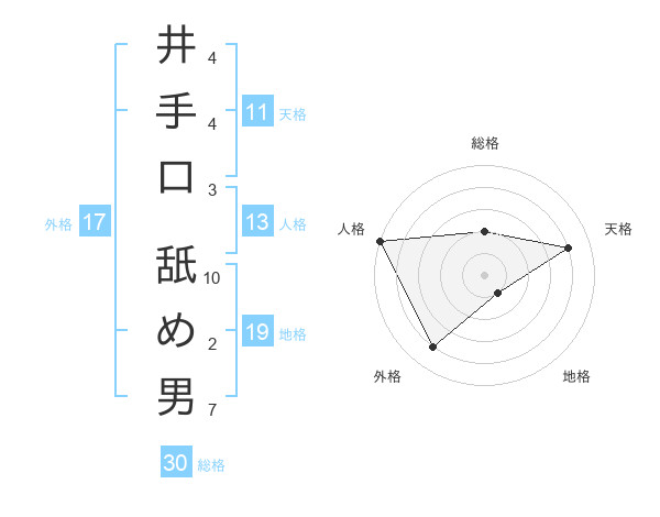 井手口 舐め男さんを姓名の画数から五運を鑑定