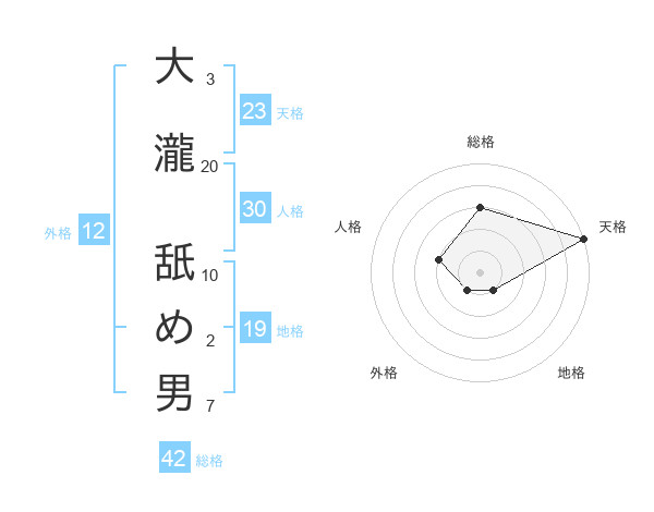 大瀧 舐め男さんを姓名の画数から五運を鑑定
