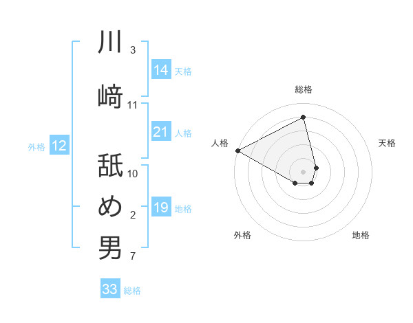 川﨑 舐め男さんを姓名の画数から五運を鑑定