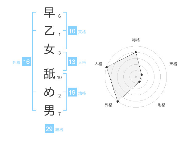 早乙女 舐め男さんを姓名の画数から五運を鑑定
