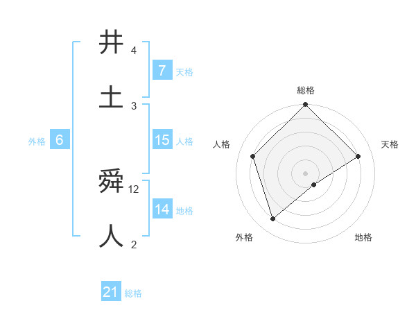 井土 舜人さんの総格は21画の5点!
