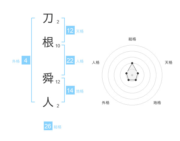 刀根 舜人さんを姓名の画数から五運を鑑定