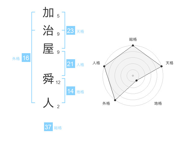加治屋 舜人さんの天格は23画の5点!