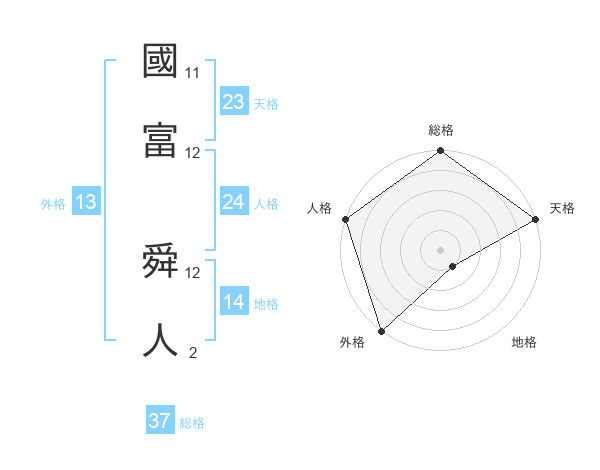 國富 舜人さんの外格は13画の5点!