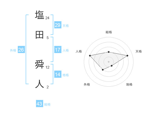 塩田 舜人さんを姓名の画数から五運を鑑定