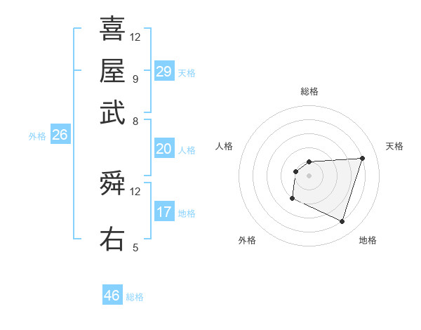 喜屋武 舜右さんを姓名の画数から五運を鑑定