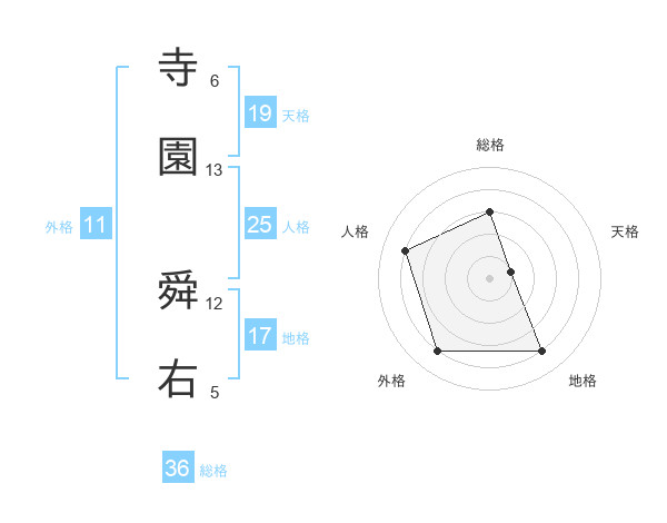 寺園 舜右さんを姓名の画数から五運を鑑定