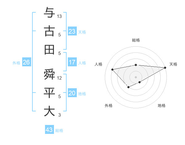 与古田 舜平大さんを姓名の画数から五運を鑑定