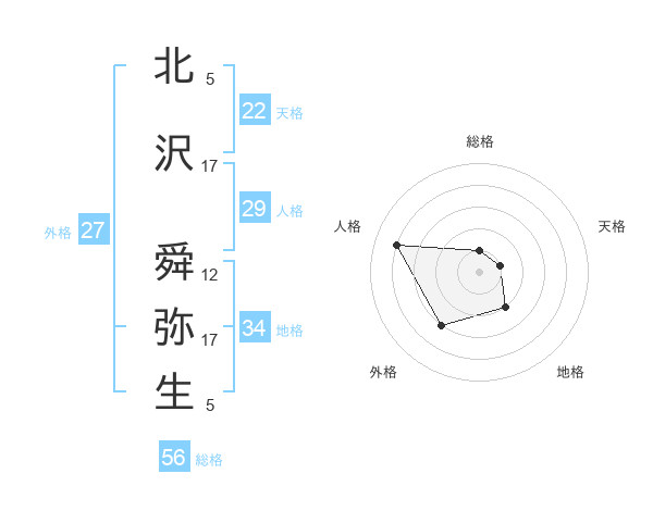 北沢 舜弥生さんを姓名の画数から五運を鑑定