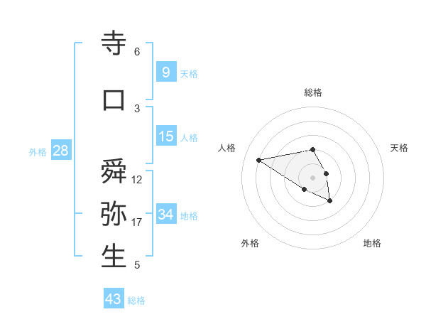 寺口 舜弥生さんの総格は43画の2点!