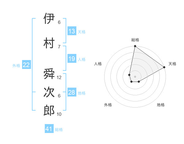 伊村 舜次郎さんの天格は13画の5点!