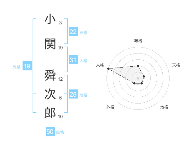 小関 舜次郎さんを姓名の画数から五運を鑑定
