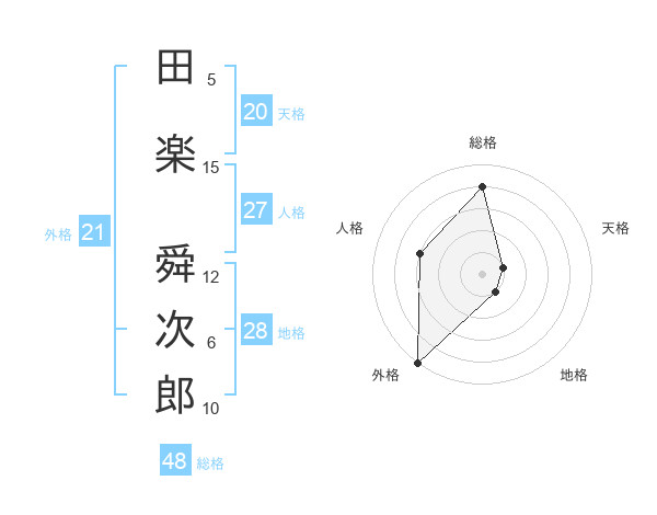 田楽 舜次郎さんを姓名の画数から五運を鑑定