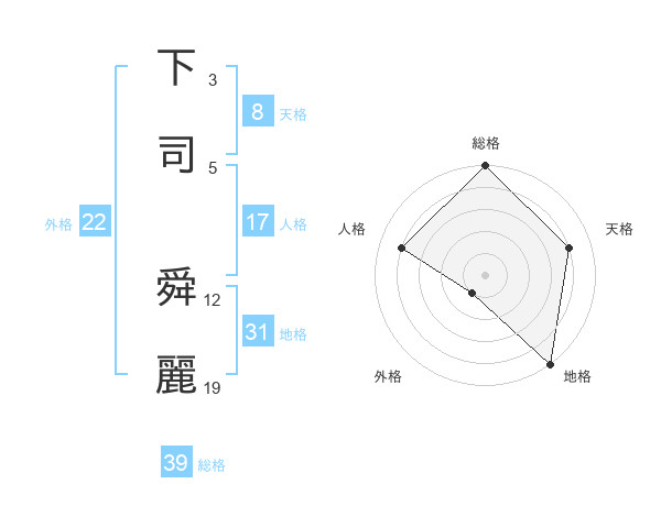 下司 舜麗さんの総格は39画の5点!