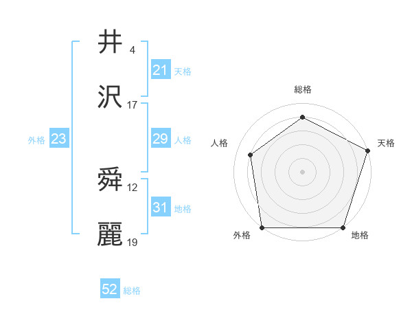 井沢 舜麗さんの総格は52画の4点!