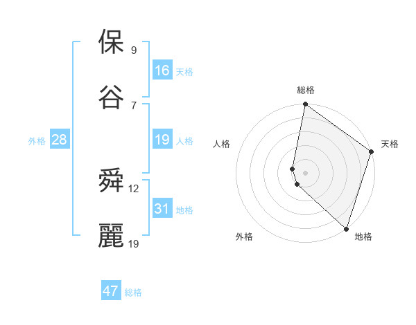 保谷 舜麗さんを姓名の画数から五運を鑑定