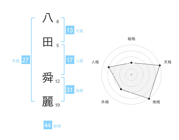 八田 舜麗さんを姓名の画数から五運を鑑定