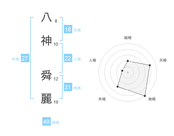 八神 舜麗さんを姓名の画数から五運を鑑定