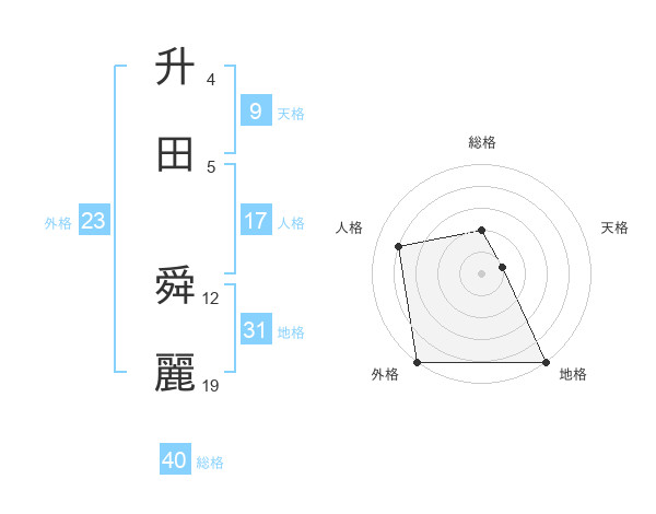 升田 舜麗さんを姓名の画数から五運を鑑定