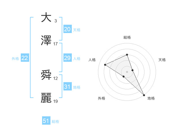 大澤 舜麗さんの外格は22画の1点!