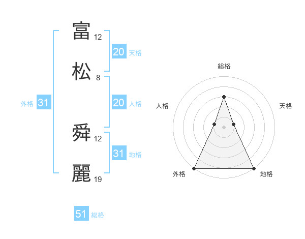 富松 舜麗さんを姓名の画数から五運を鑑定