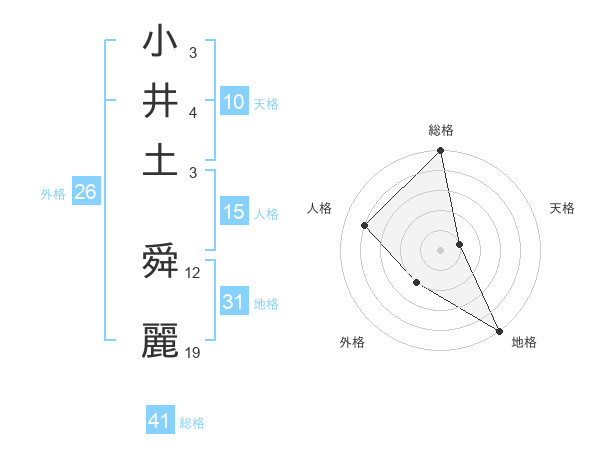 小井土 舜麗さんの総格は41画の5点!