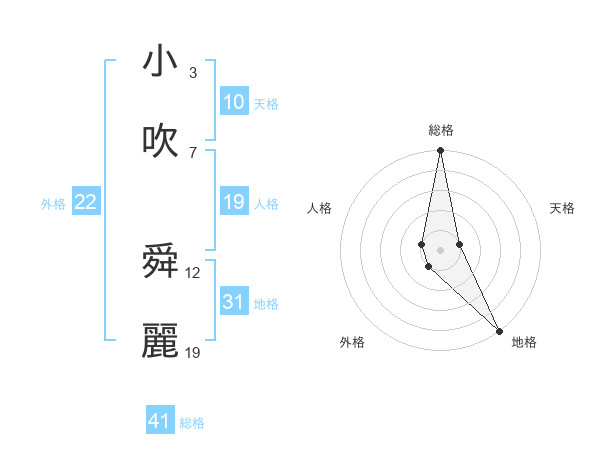 小吹 舜麗さんを姓名の画数から五運を鑑定