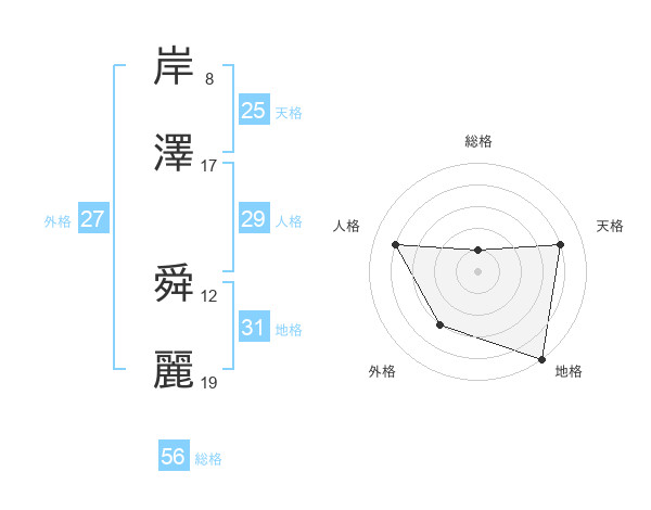 岸澤 舜麗さんの総格は56画の1点!