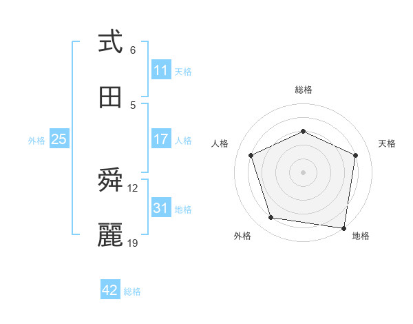 式田 舜麗さんを姓名の画数から五運を鑑定