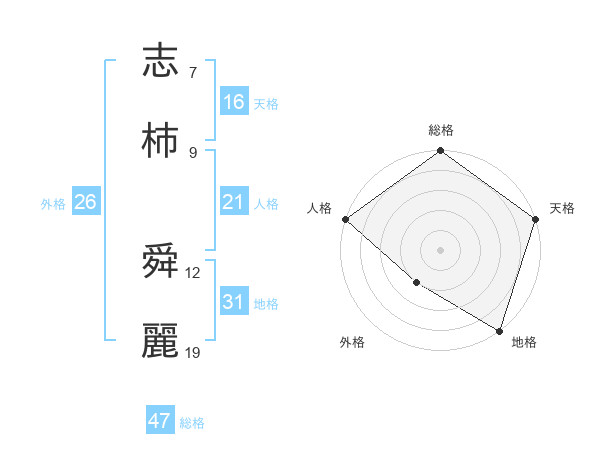 志柿 舜麗さんを姓名の画数から五運を鑑定