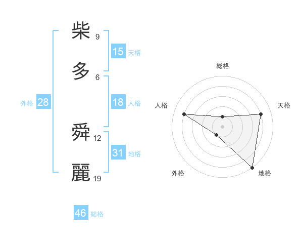 柴多 舜麗さんを姓名の画数から五運を鑑定