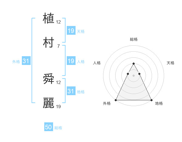 植村 舜麗さんの総格は50画の2点!