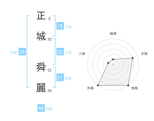 正城 舜麗さんの天格は15画の4点!