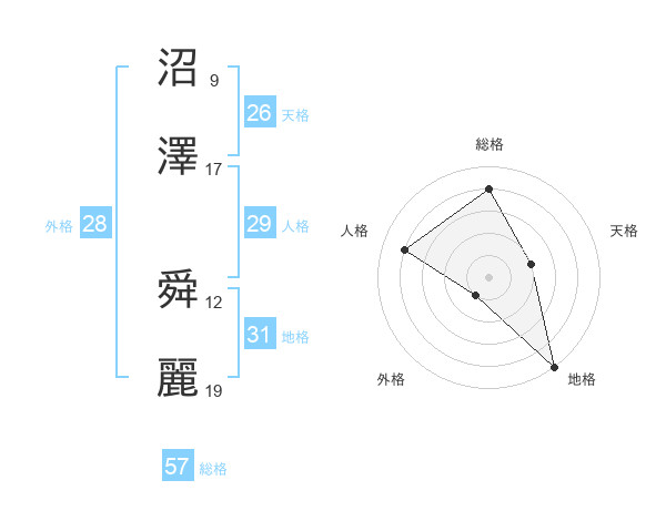 沼澤 舜麗さんを姓名の画数から五運を鑑定