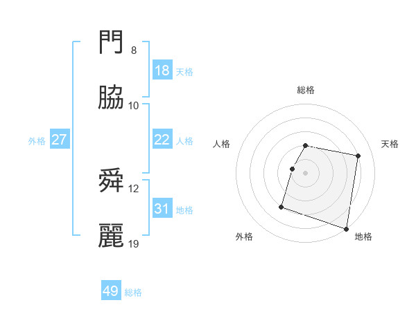 門脇 舜麗さんの天格は18画の4点!