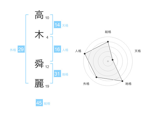 高木 舜麗さんの総格は45画の4点!