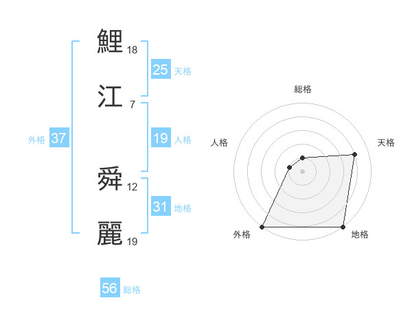 鯉江 舜麗さんの外格は37画の5点!