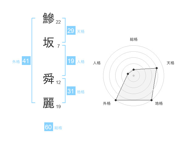 鰺坂 舜麗さんの外格は41画の5点!