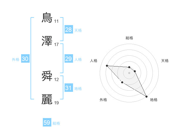 鳥澤 舜麗さんの総格は59画の1点!