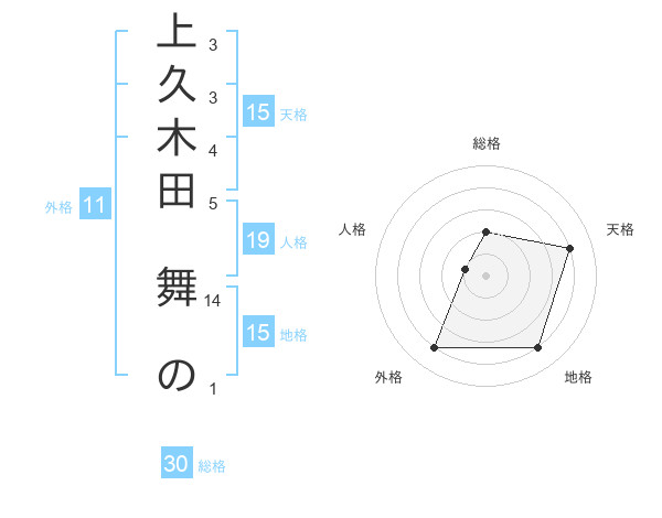 上久木田 舞のさんを姓名の画数から五運を鑑定