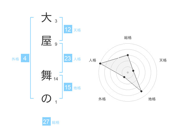 大屋 舞のさんの天格は12画の1点!