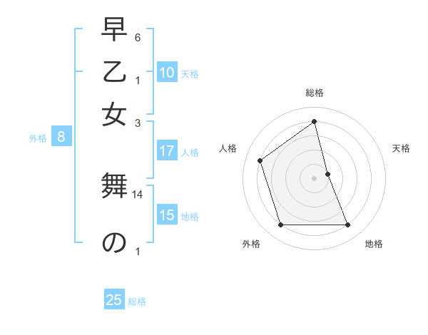 早乙女 舞のさんを姓名の画数から五運を鑑定