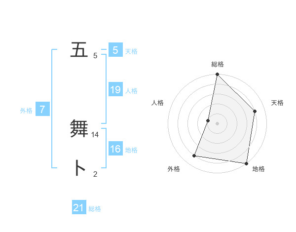 五 舞トさんの総格は21画の5点!