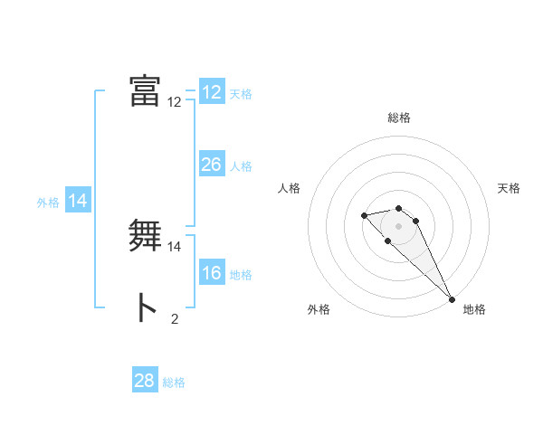 富 舞トさんの地格は16画の5点!