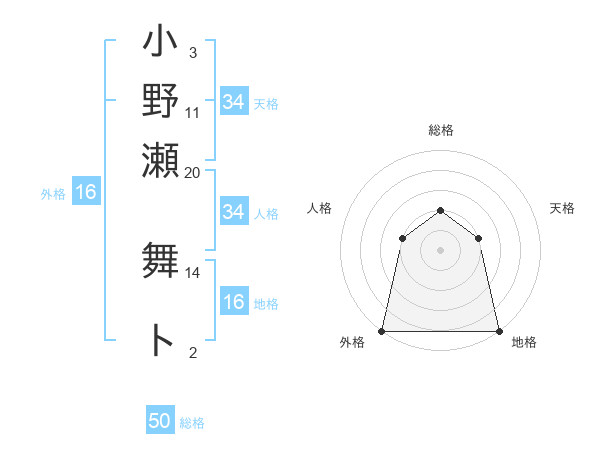 小野瀬 舞トさんを姓名の画数から五運を鑑定