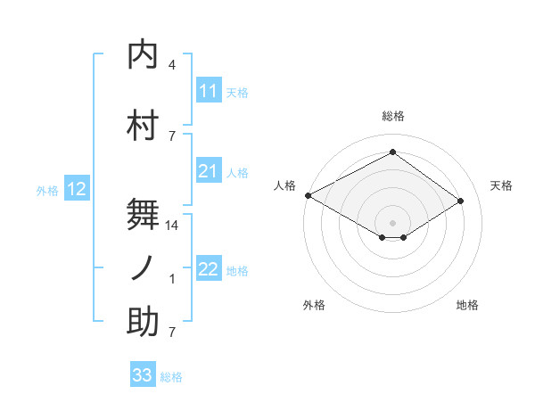 内村 舞ノ助さんを姓名の画数から五運を鑑定