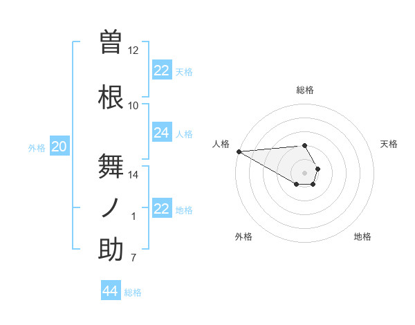 曽根 舞ノ助さんの総格は44画の2点!