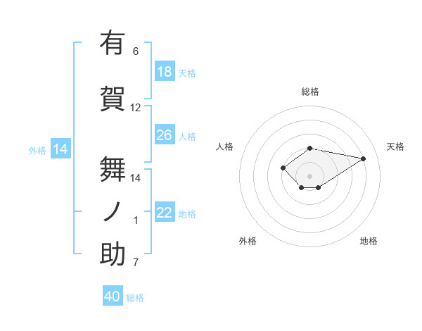 有賀 舞ノ助さんを姓名の画数から五運を鑑定
