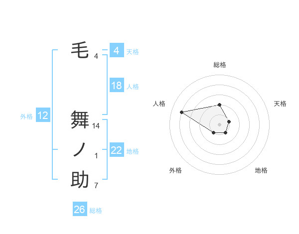 毛 舞ノ助さんの総格は26画の2点!