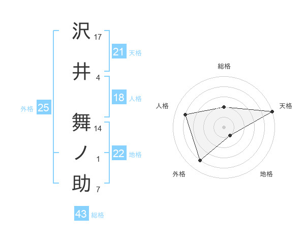 沢井 舞ノ助さんを姓名の画数から五運を鑑定